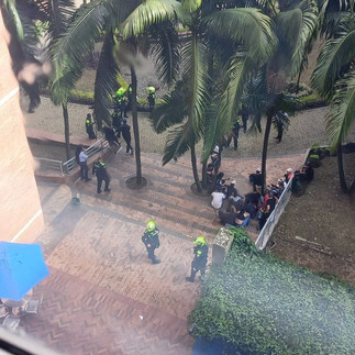 #Medellín / riña campal entre hinchas del cucuta y atlético nacional, terminaron los hinchas del cucuta metiendose a la universidad salazar y Herrera por la 70